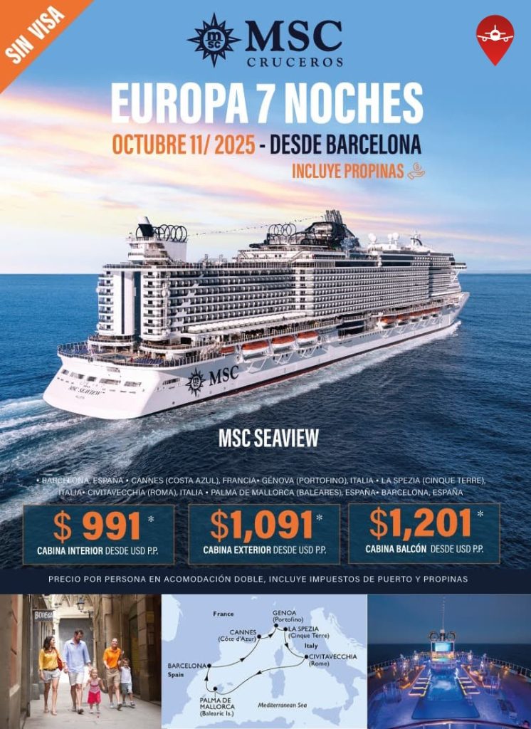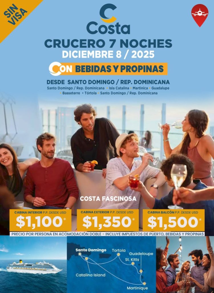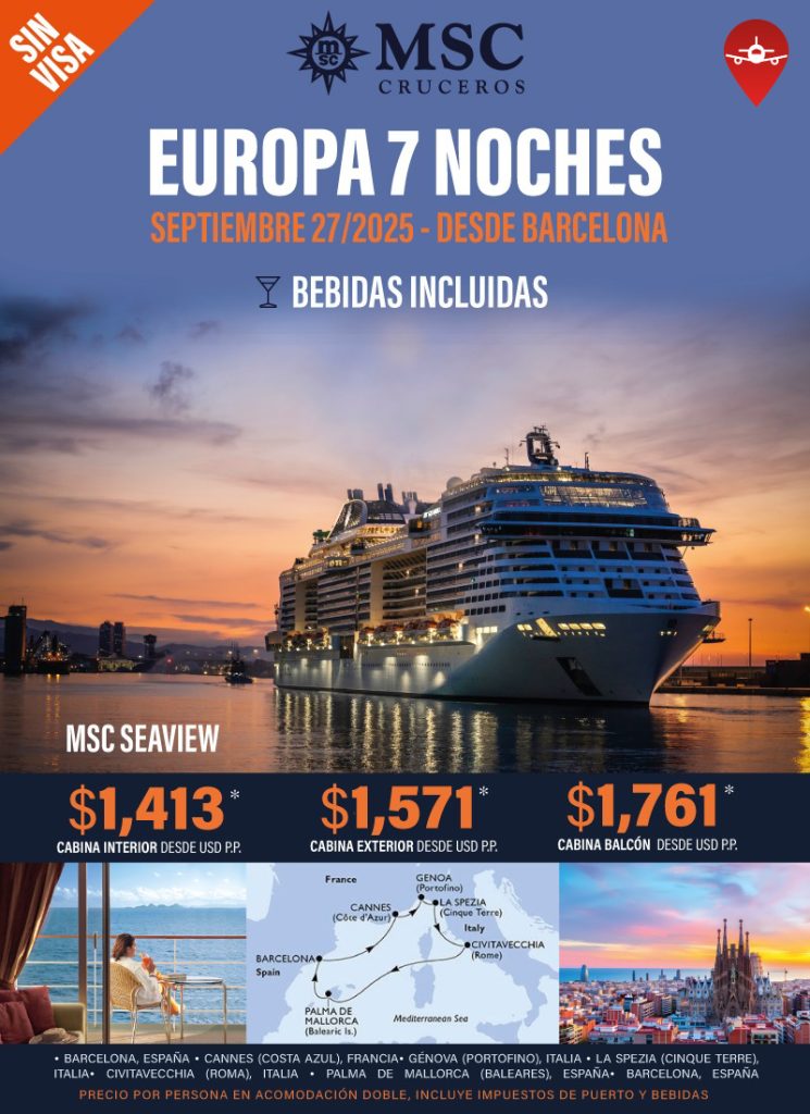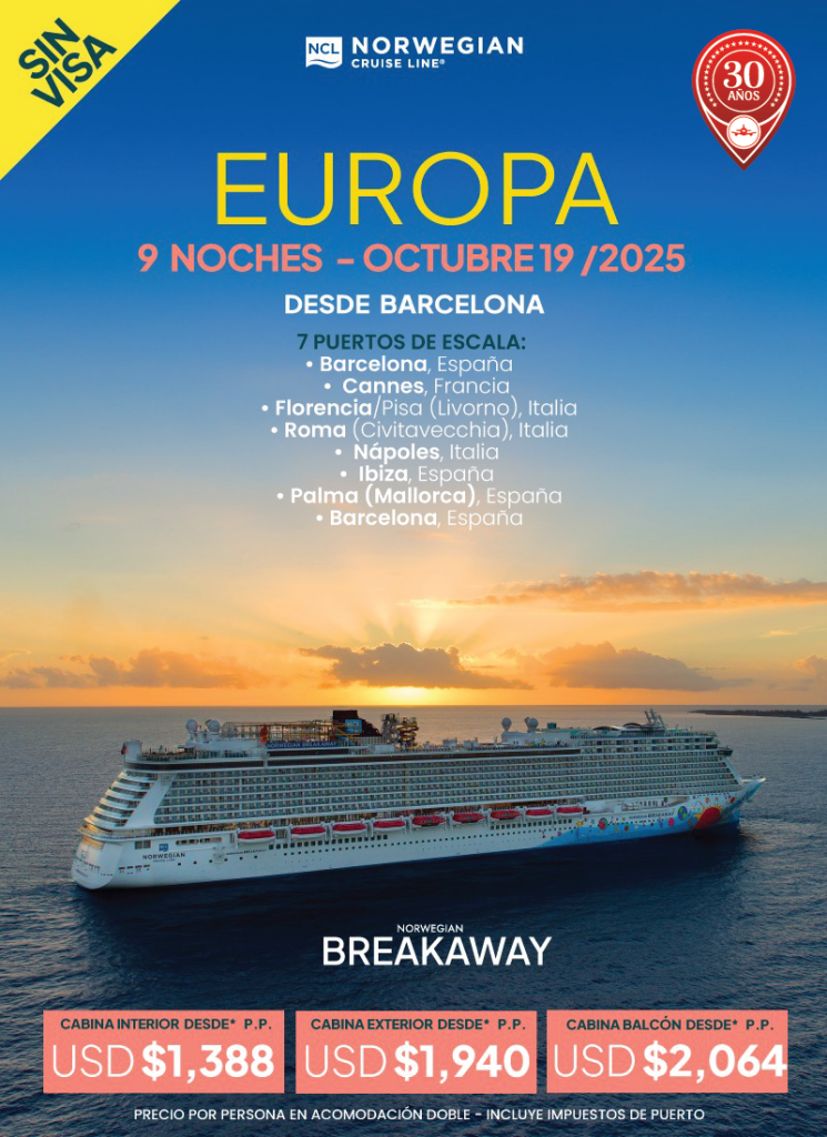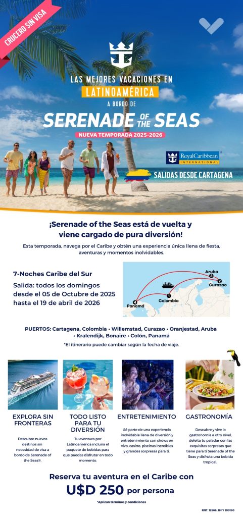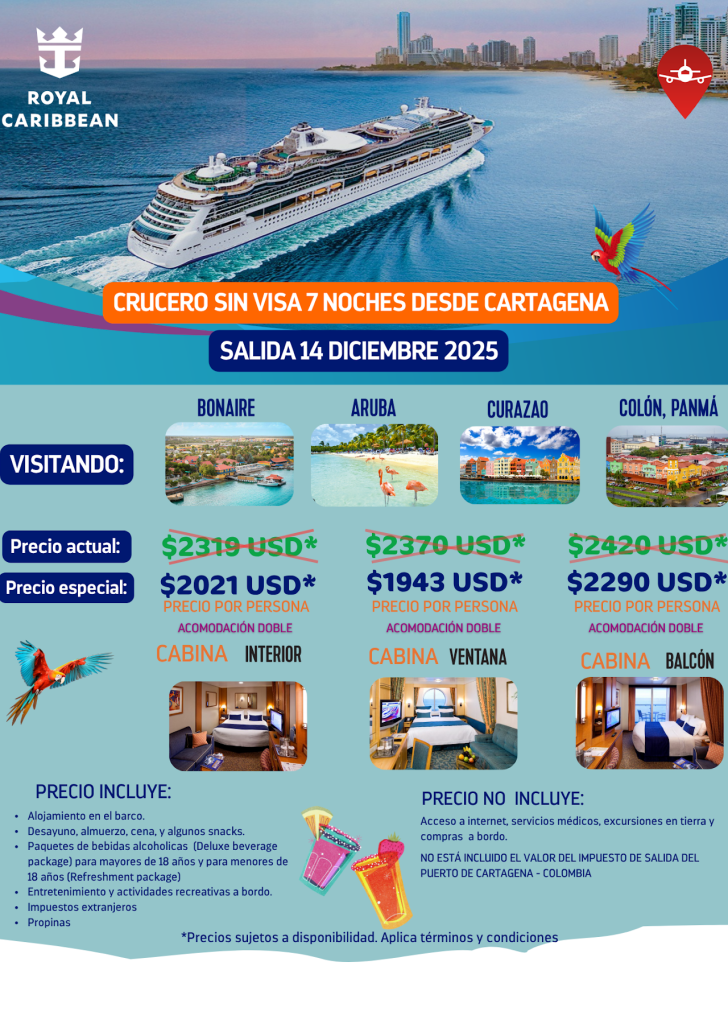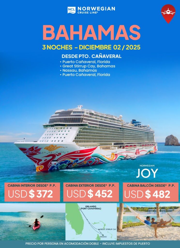 Vive la magia de recorrer el mundo en un crucero, disfruta de lo ancho del mar para experimentar la mejor experiencia a bordo por todo lo alto, rodeado de musica, actividades, shows, comida y un sin fin de alegria que haran de tu viaje un sueño inolvidable.
